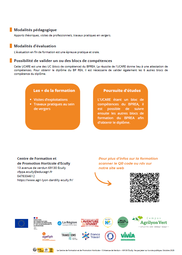 L’UCARE étant un bloc de compétences du BPREA, il est possible de suivre ensuite les autres blocs de formation du BPREA afin d’obtenir le diplôme.