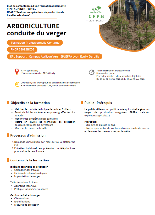 Le public ciblé est un public adulte qui souhaite gérer un verger de production (stagiaires BPREA, salariés, exploitants agricoles…)