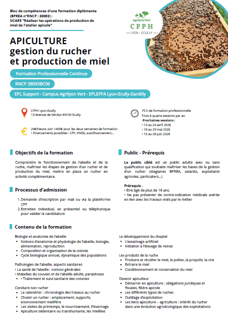 - Le public ciblé est un public adulte avec ou sans qualification qui souhaite maîtriser les bases de la gestion d’un rucher (stagiaires BPREA, salariés, exploitants agricoles, particuliers…)