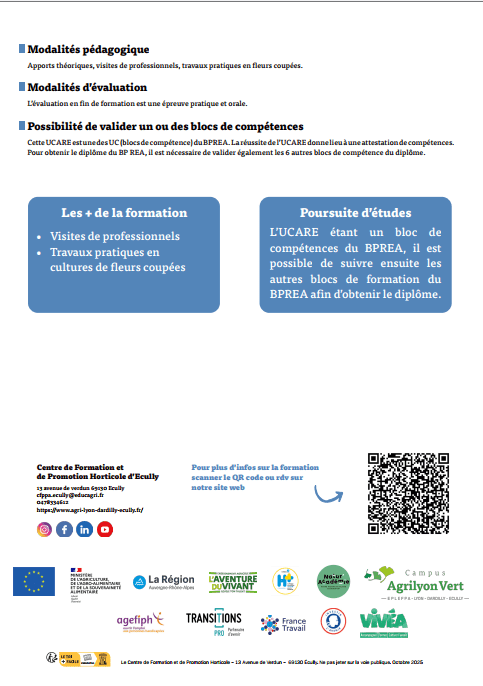 Cette UCARE est une des UC (blocs de compétence) du BPREA. La réussite de l’UCARE donne lieu à une attestation de compétences. Pour obtenir le diplôme du BP REA, il est nécessaire de valider également les 6 autres blocs de compétence du diplôme.